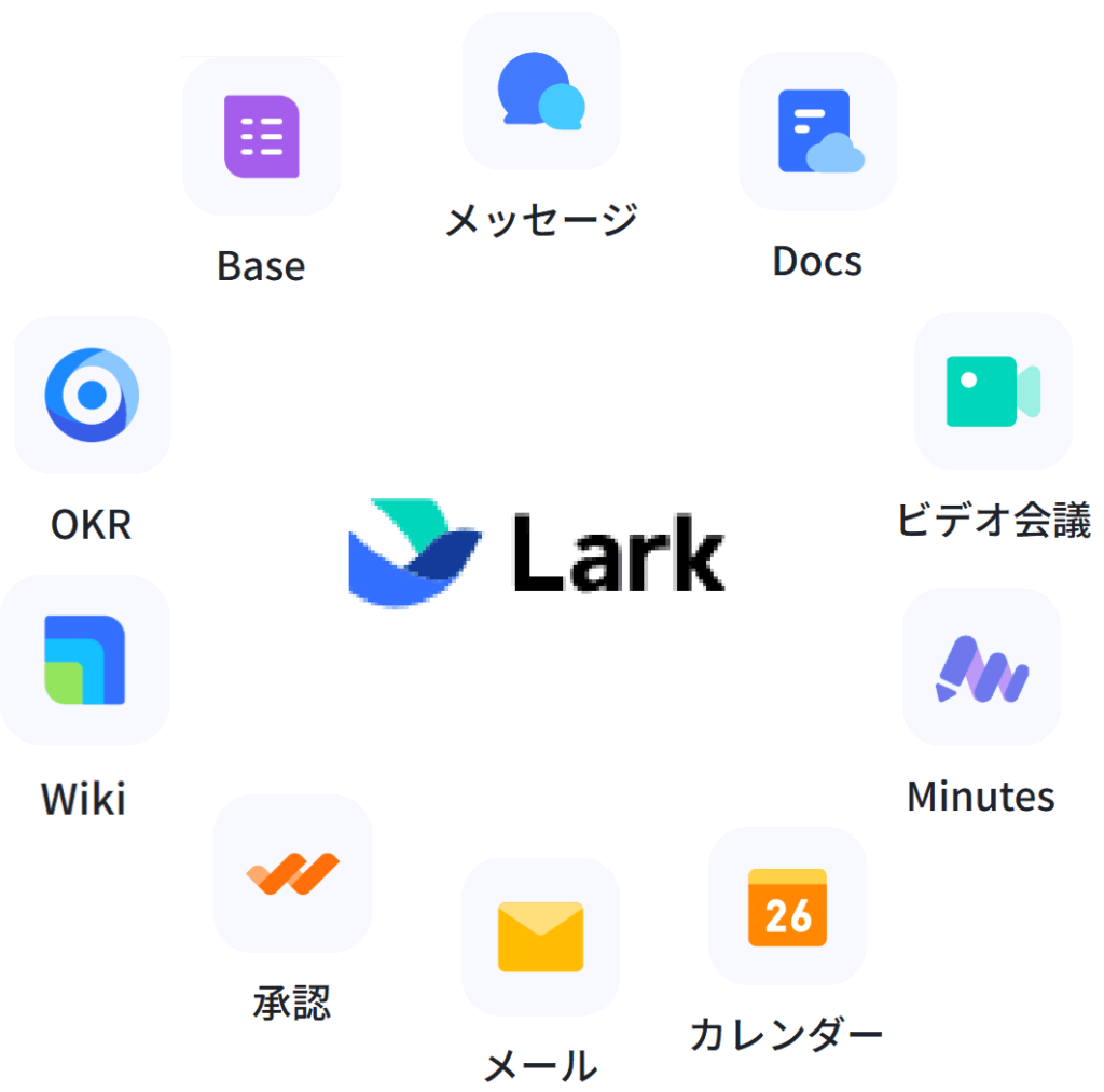 Larkは以下のような複数の業務機能を一つのプラットフォームに統合しています。