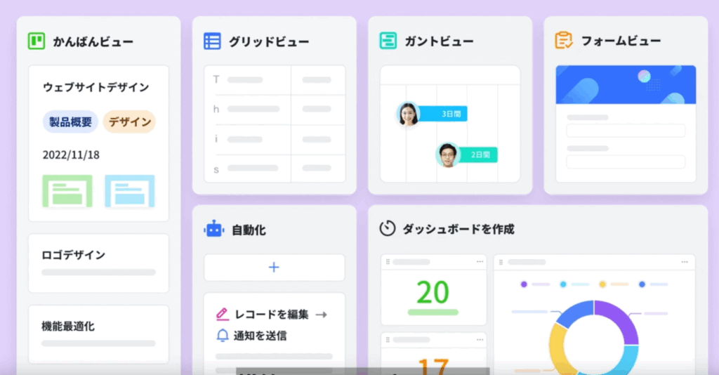 | 看板ビュー | カンバン方式で進捗管理に最適 |