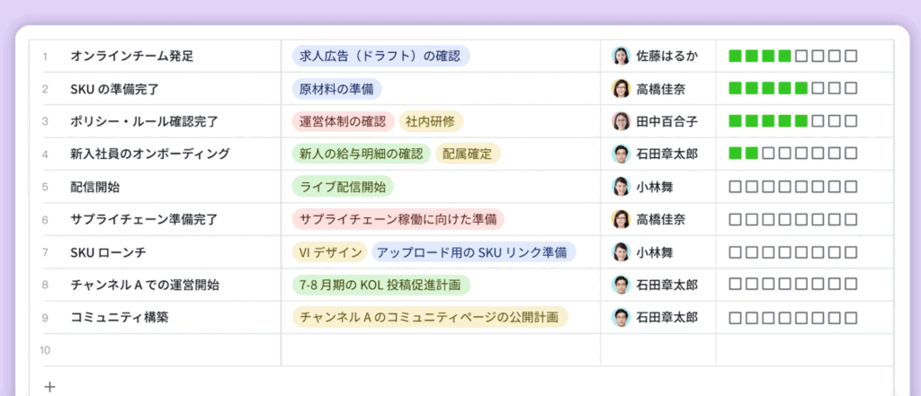 - メンバーフィールド:担当者を割り当てて役割を明確に