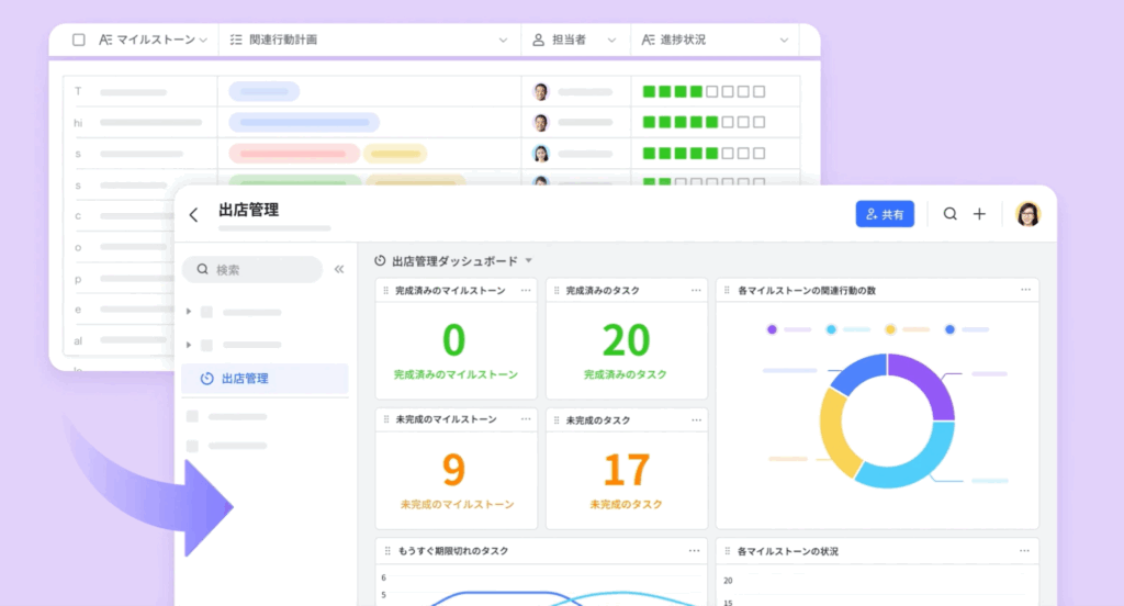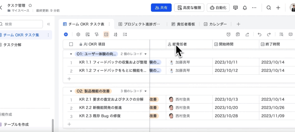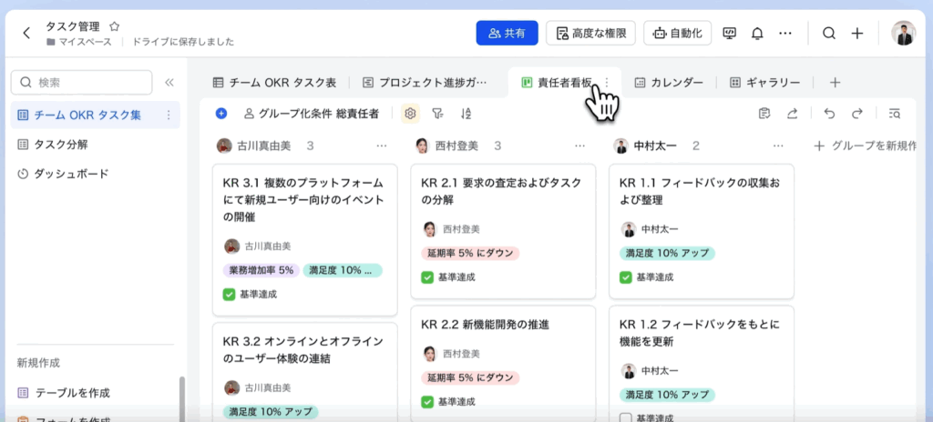 - 「自分の担当プロジェクトのみ閲覧可」など、表示条件のカスタマイズ