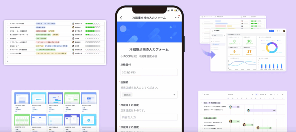 Lark Baseは、現場の業務に合わせて柔軟にカスタマイズできる業務構築ツールです。