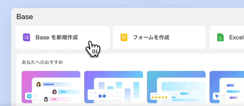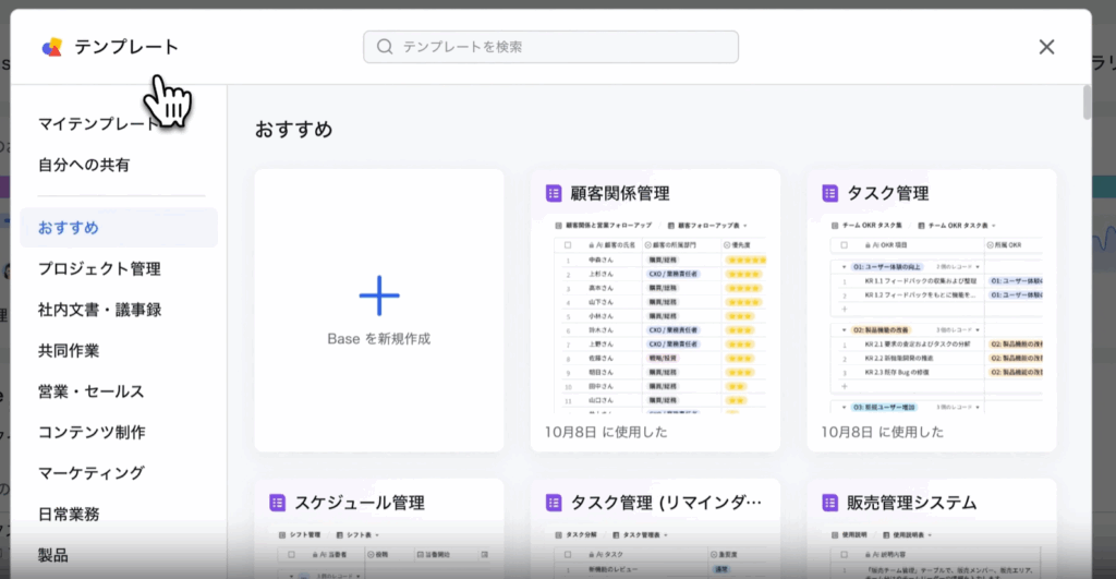 Baseでは、あらかじめ用意された業務テンプレートを活用することで、初めての方でもすぐに使い始められます。