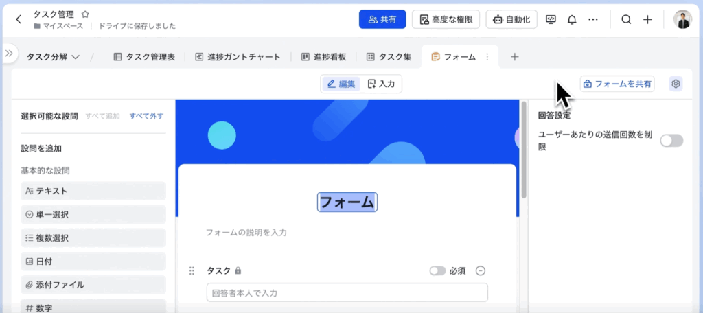 他のメンバーから情報を収集したい場合は、入力用フォームを生成して共有することができます。